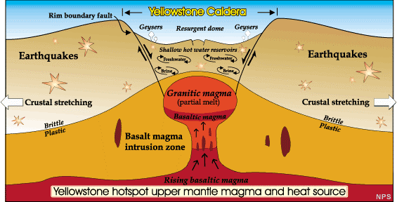 There were a number of previous eruption events which have left a trail of geologic clues across Idaho, Utah, and Nevada. The reason for this long “tail” is that the earth’s crust actually moves over the mantle in response to plate tectonics.