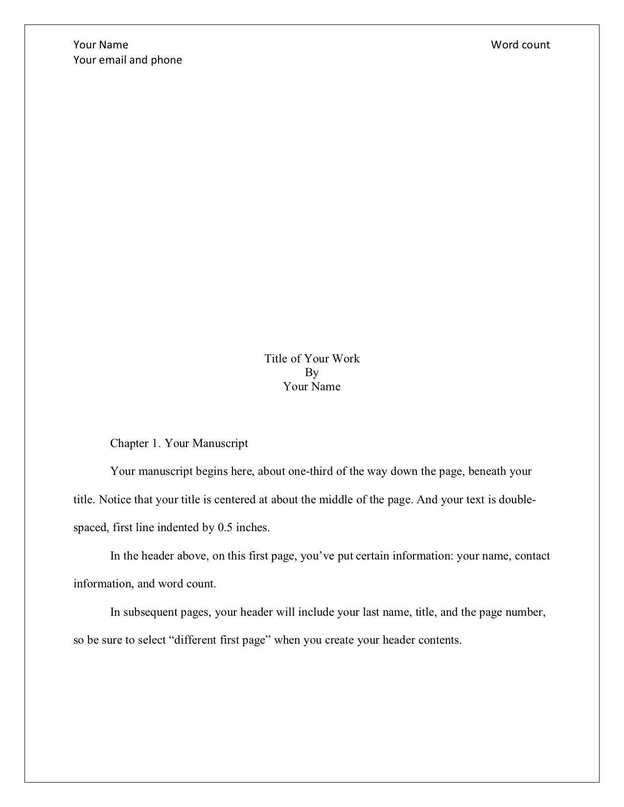 I’m going to give you a template for your submissions because the last thing you want to do is annoy an editor or agent with an incorrectly-formatted manuscript.
